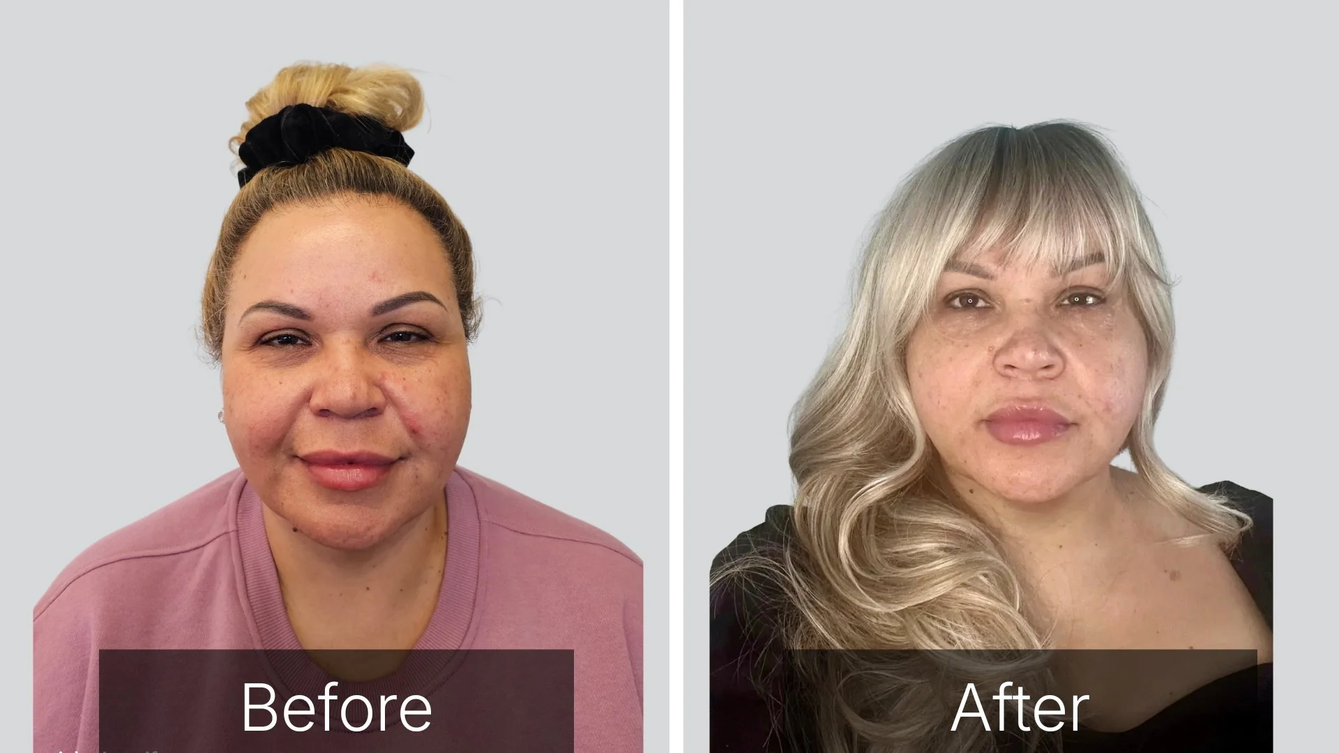 The mid-face lift of the procedure tightened this patient’s (48) jaw line and softened marionette lines. Because the procedure secures the under eye fat under the eyes, her eye bags are gone and even without pinching or removing skin her under eyes are smooth and youthful.
