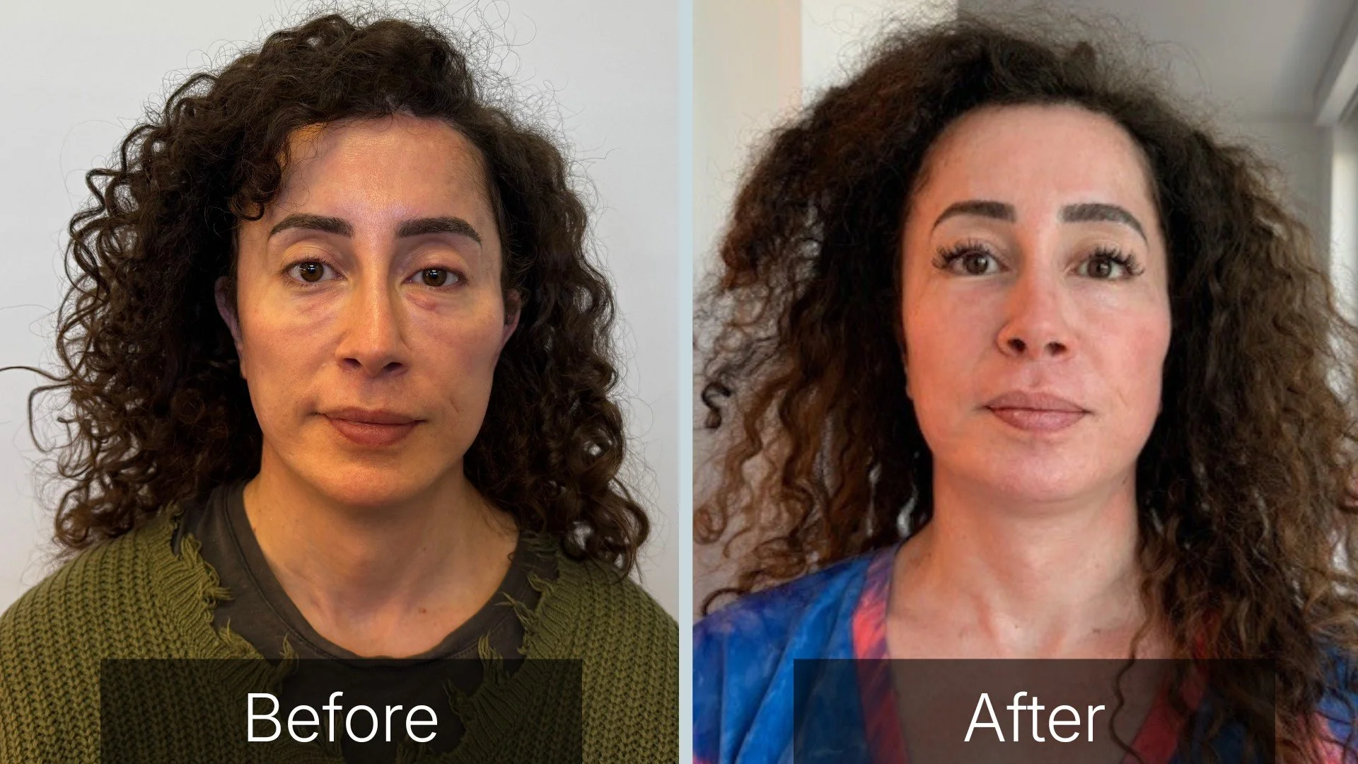 This patient (35) received the Bright Eyes MD Procedure and a lip lift. Under eye discoloration and bags have been eliminated along with nasal labial folds.